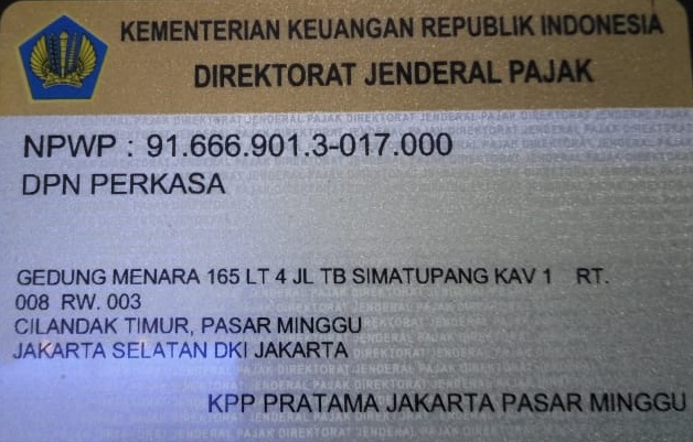 Legalitas Asosiasi Nama Dokumen Nomor DokumenAkta Pendirian:No.06. 17 Mei 2019DownloadNPWP:91.666.901.3-017.000DownloadSKT Pajak:S-13746KT/WPJ.30/KP.0703/2019DownloadSK Kemenham:AHU-0005715.AH.01.07.TAHUN.2019DownloadProfil:Profil DPN PerkasaDownloadBuku Saku:Edisi 1Download